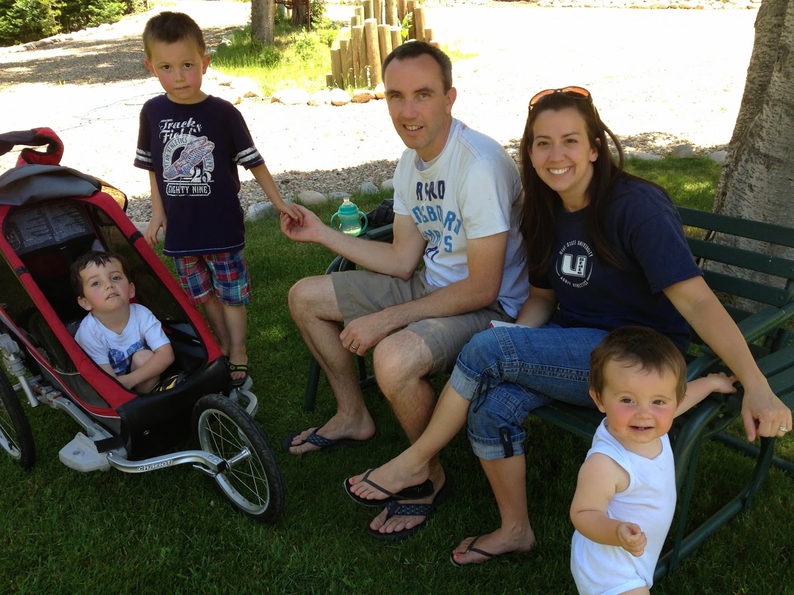 We decided to pick up our tent and move to the east side of Glacier. It was so surprising. We went from Green lush to dry Utah looking scenery. But it was so neat and I would recommend it to anyone. We stayed a few more nights at Two Medicine Lake. Our first hike there was to Twin Falls. We hiked all the way around two Medicine Lake. Beautiful. We thought we saw a bear once and that was scary. Carrying bear spray is scary enough... just thinking you might run into one. The kids were tired so I just did a quick jog up to Upper Two medicine Lake. Amazing. Beautiful. And peaceful. (but that might have been the face that I didn't have 6 kids with me to entertain and distract as they hiked) We took a fun boat ride back across the lake after our 7 miles hike.