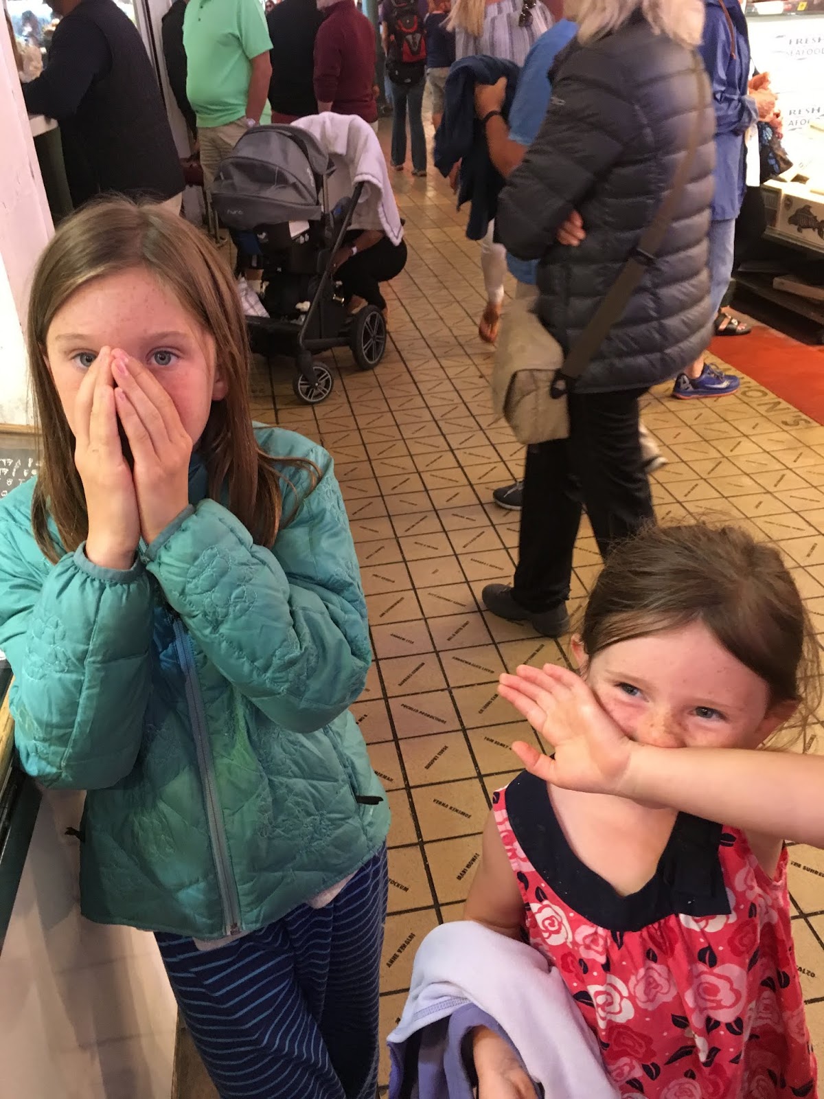 We got to Seattle and dropped our stuff off at Rachels house. We headed to Pikes market. We ate some delicious food- peroskis, doughnuts and smelled the stinky fish! Then we walked to the needle to see the amazing playground.